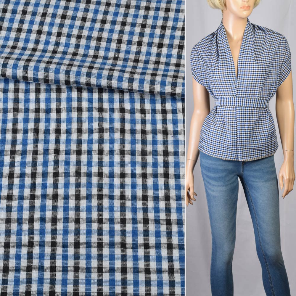 Хлопок рубашечный в клетку черно-синюю, белый, ш.145 купить в розницу и оптом