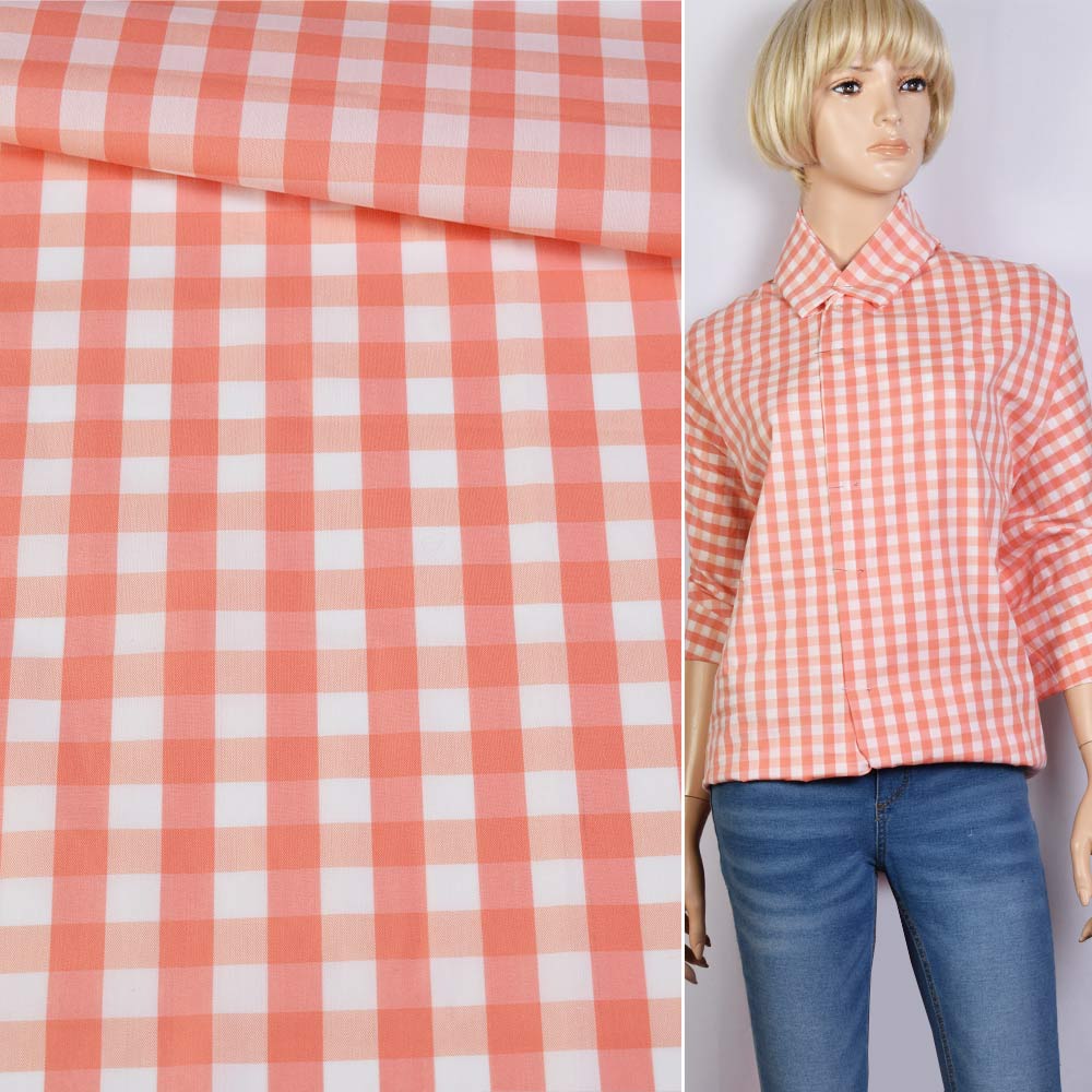 Коттон стрейч в клетку 1см персиково-белую, ш.137 купить в розницу и оптом