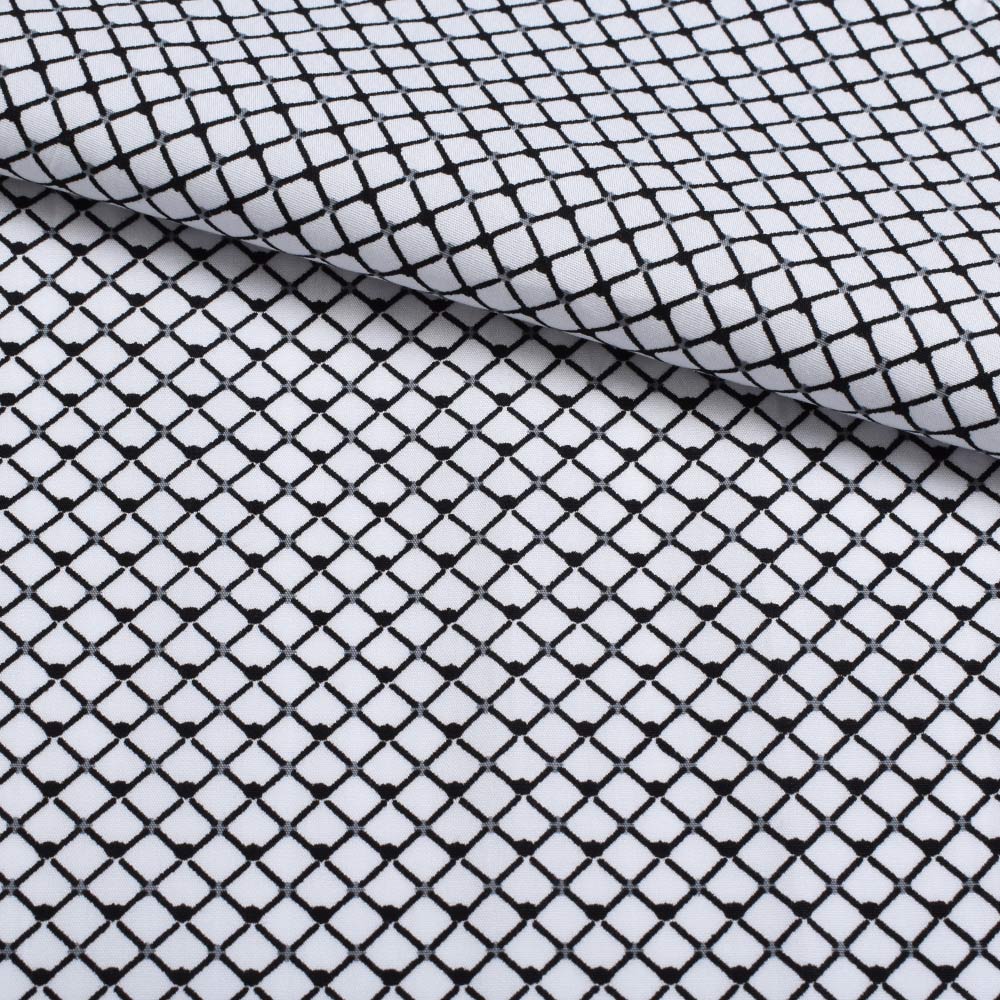 Коттон в сетку 5мм черную, белый, ш.140. Состав ткани: Хлопок-100. Плотность ткани: 111 г/м.кв. Страна производитель: Южная Корея. Рубашечная ткань - тонкая, имеет гладкую поверхность. Качественный состав материала обеспечивает гигроскопичность, практичность и функциональность. Благодаря натуральным волокнам, ткань не вызывает аллергических реакций и долгое время сохраняет свой первоначальный вид. Ткань качественная, приятная к телу, слегка держит форму, хорошо драпируется.