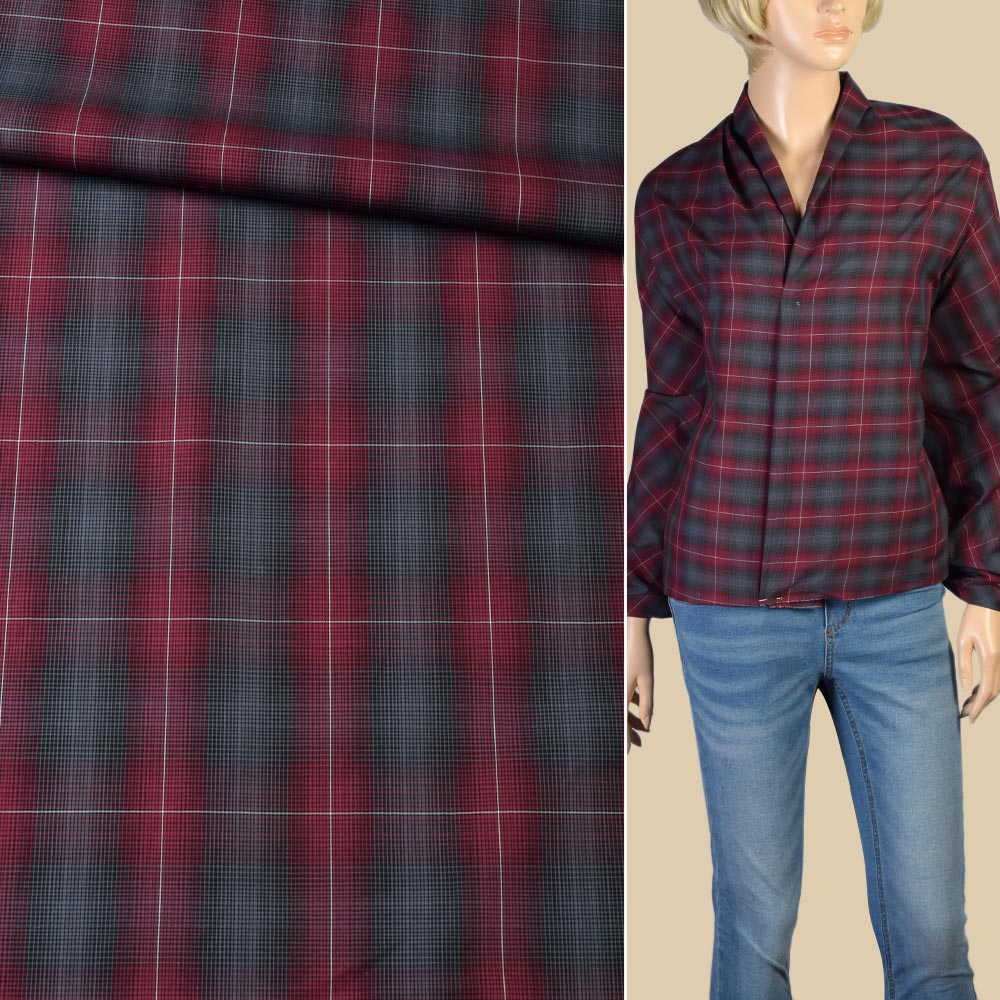 Коттон рубашечный в клетку серо-бордовую, ш.150. Состав ткани: Хлопок-100. Плотность ткани: 88 г/м.кв. Страна производитель: Германия. Рубашечная ткань - тонкая, имеет гладкую поверхность. Качественный состав материала обеспечивает гигроскопичность, практичность и функциональность. Благодаря натуральным волокнам, ткань не вызывает аллергических реакций и долгое время сохраняет свой первоначальный вид. Ткань качественная, приятная к телу, слегка держит форму, хорошо драпируется.
