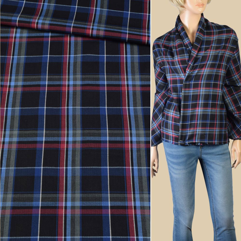 Коттон рубашечный в клетку сине-бело-красно-зеленую, ш.150 купить в розницу и оптом