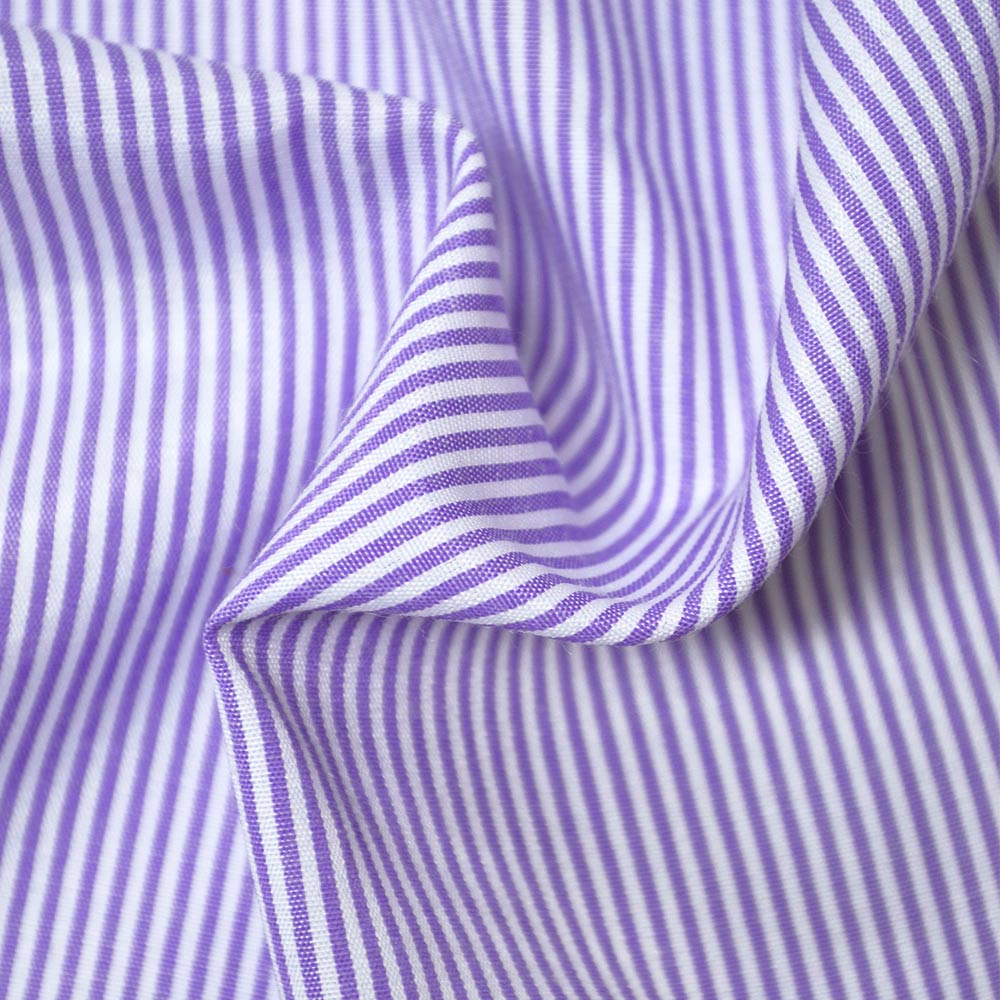 Рубашечная ткань в полоску сиренево-белую, ш.140. Состав ткани: Вискоза-20, Полиэстер-50, Хлопок-30. Плотность ткани: 81 г/м.кв. Страна производитель: Южная Корея. Рубашечная ткань - тонкая, имеет гладкую поверхность. Качественный состав материала обеспечивает гигроскопичность, практичность и функциональность. Благодаря натуральным волокнам, ткань не вызывает аллергических реакций и долгое время сохраняет свой первоначальный вид. Ткань качественная, приятная к телу, слегка держит форму, хорошо драпируется.