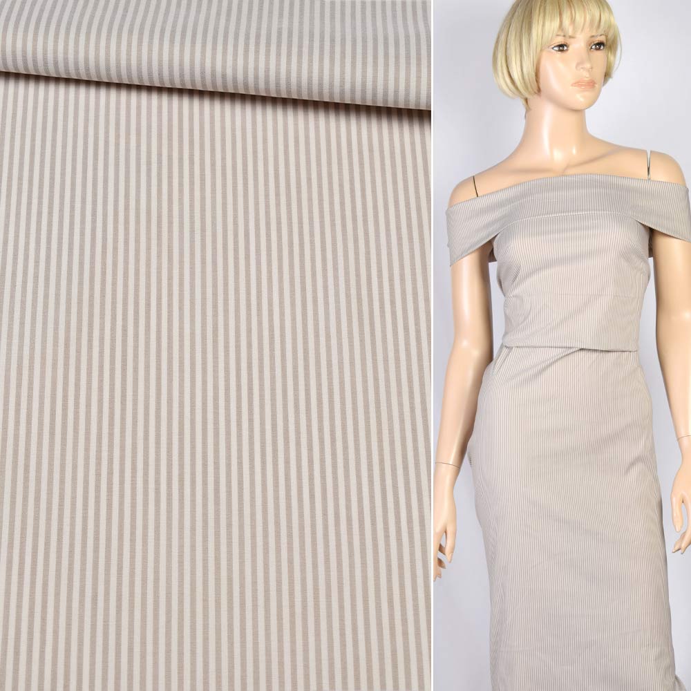 Рубашечная ткань в полоску коричневую, бежевая, ш.145 купить в розницу и оптом