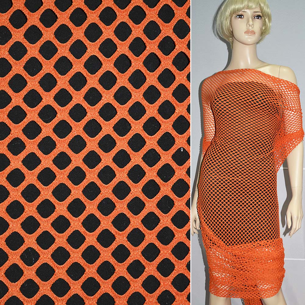 Сетка трикотажная терракотовая ш.150. Состав ткани: Вискоза-20, Полиамид-20, Полиэстер-55, Эластан-5. Плотность ткани: 164 г/м.кв. Страна производитель: Южная Корея. Трикотаж стрейч сетка кабаре - это эластичная ткань с крупными ромбовидными отверстиями. Благодаря своему уникальному составу и дизайну это эффектная ткань с большой эластичностью. Отверстия шириной примерно 1 см равномерно расположены между собой по всей ткани. Эта ткань имеет четырехстороннее растяжение, что делает эту ткань универсальной для работы. Она прекрасно подходит для всех видов костюмов, танцевальной одежды, домашнего декора, украшений, платьев, белья.