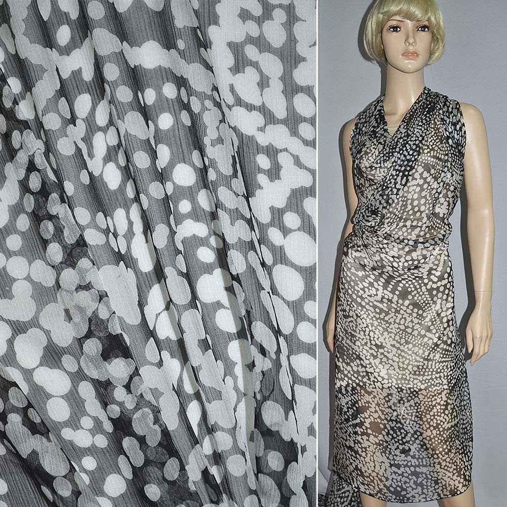 Шелк черный в мелкий белый горох, ш.140 купить в розницу и оптом