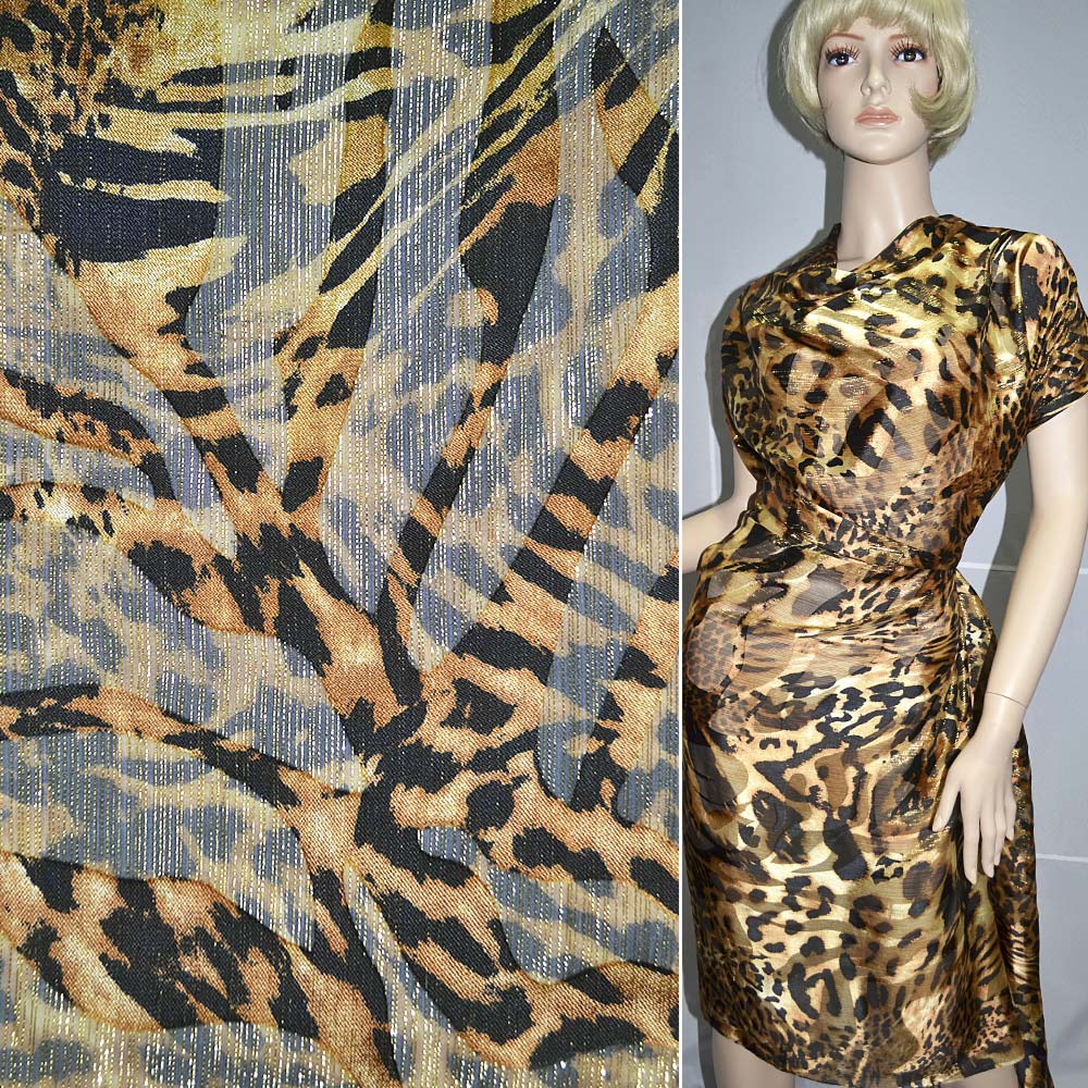 Шелк золотисто-черный "леопард" с золотым люрексом ш.140 купить в розницу и оптом