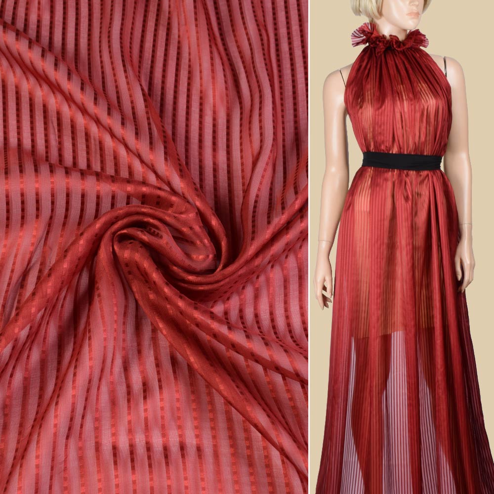 Шелк красный темный в полоску ш.137 купить в розницу и оптом