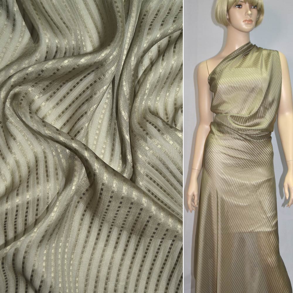Шелк оливковый темный в полоску ш.137 купить в розницу и оптом