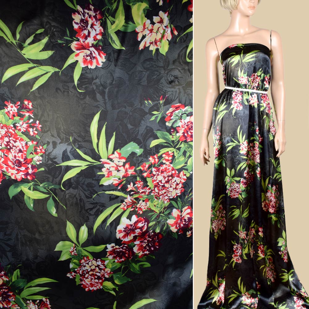 Шелк черный с молочно-красными цветами ш.142 купить в розницу и оптом