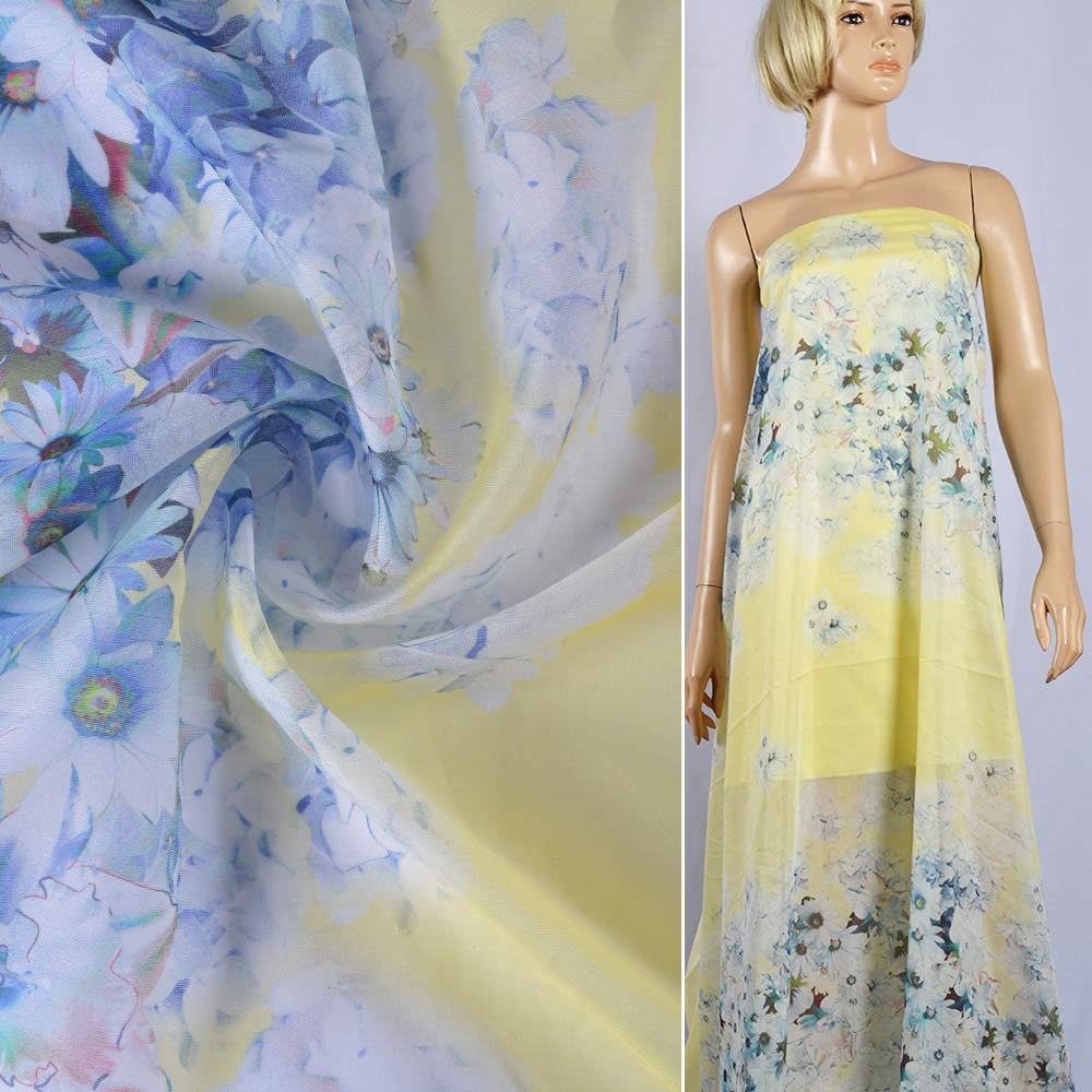 Шелк с хлопком желтый с бледно-голубыми цветами Германия ш.135 купить в розницу и оптом