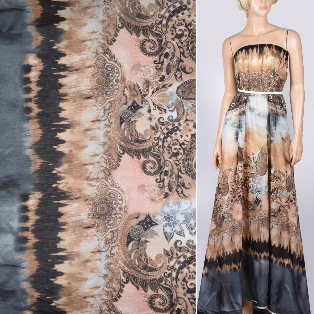 Шелк серо-бежевый с коричневыми "огурцами" ш.138 купить в розницу и оптом