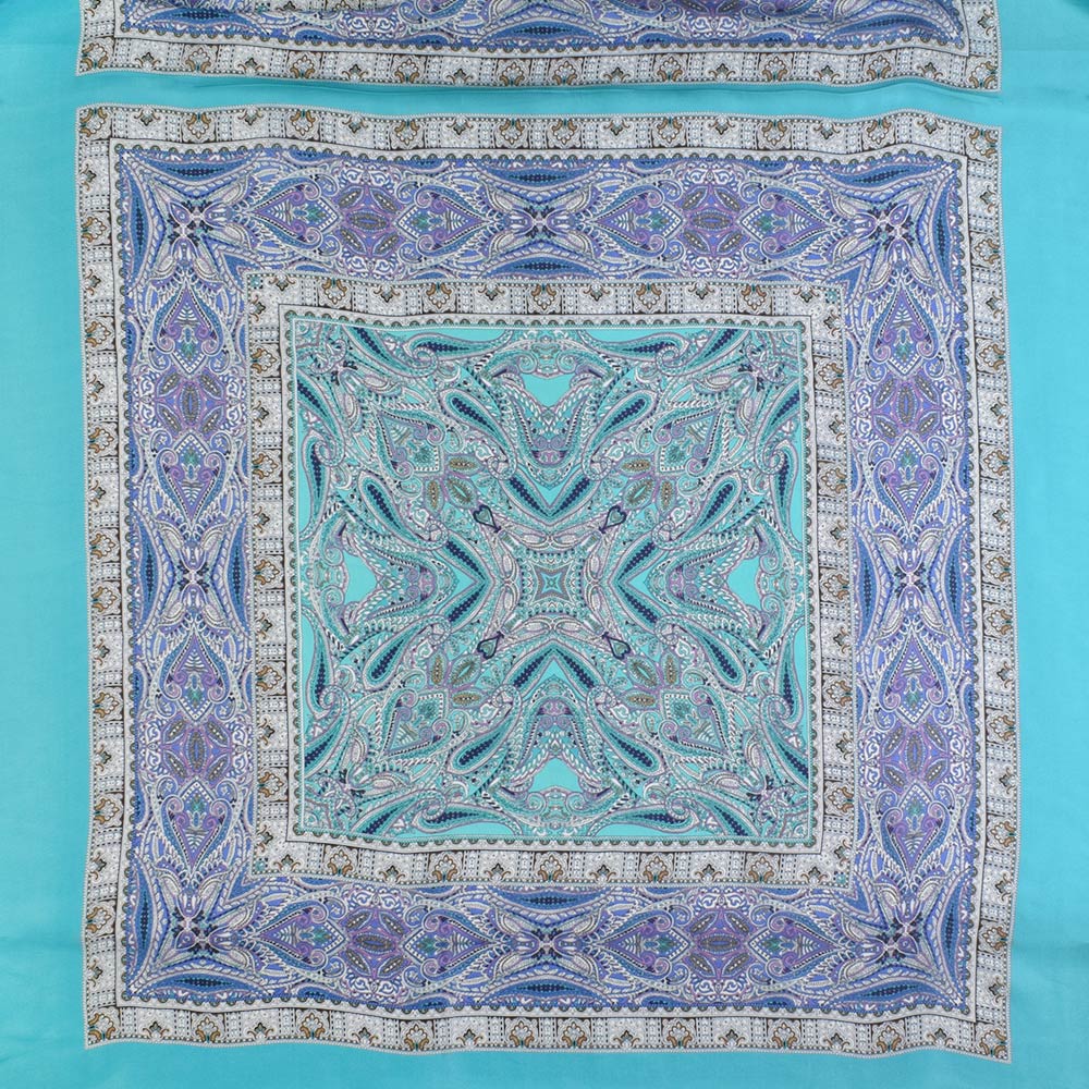 Шелк бирюзовый светлый с сине-серыми "огурцами" (платок) ш.135 купить в розницу и оптом