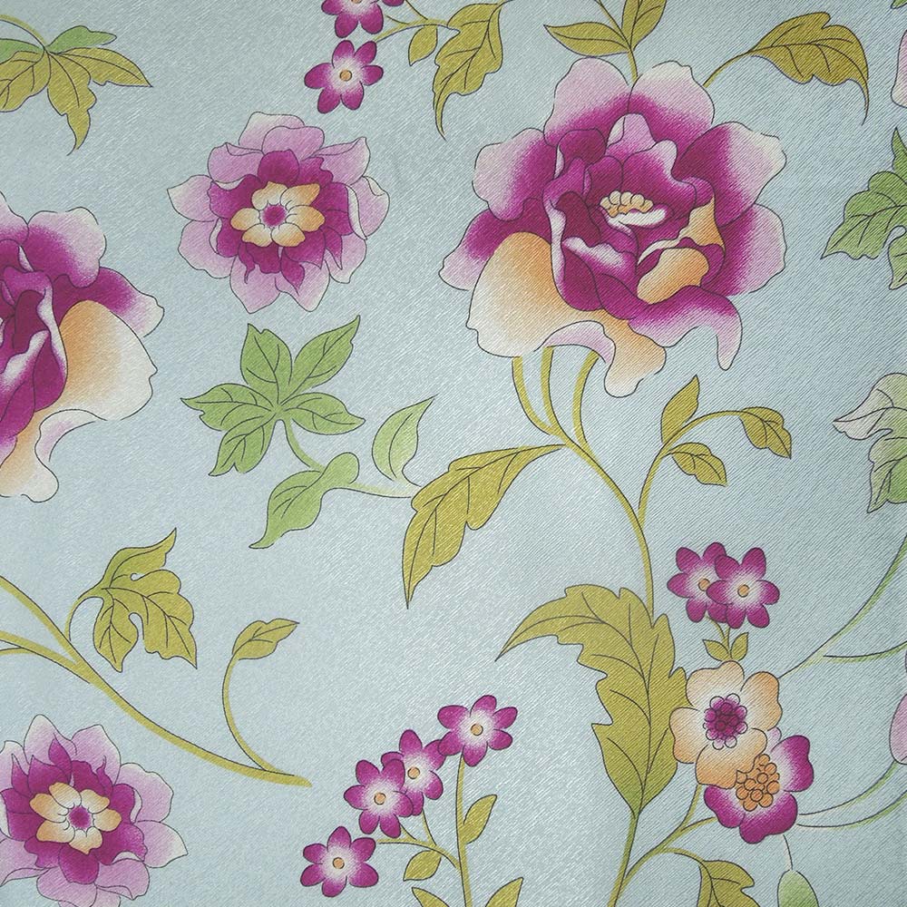 Шелк бледно-голубой с бордовыми цветами купить в розницу и оптом