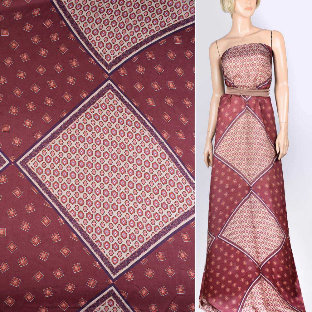 Шелк бордово-бежевый с геометрическим рисунком "ромбы" ш.135 купить в розницу и оптом