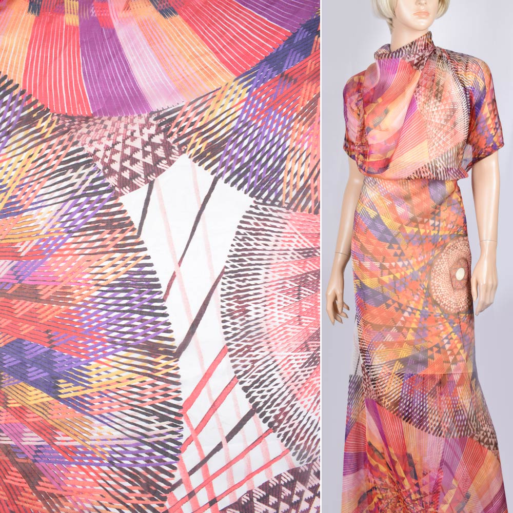 Шелк красно-фиолетовым+желтым абстрактный рисунком (принт) ш.140 купить в розницу и оптом