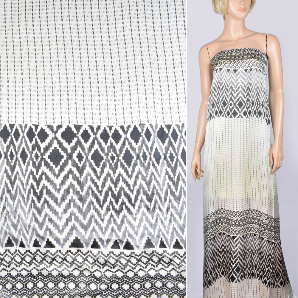 Шелк молочный с черным геометрическим рисунком рапорт ш.134 купить в розницу и оптом