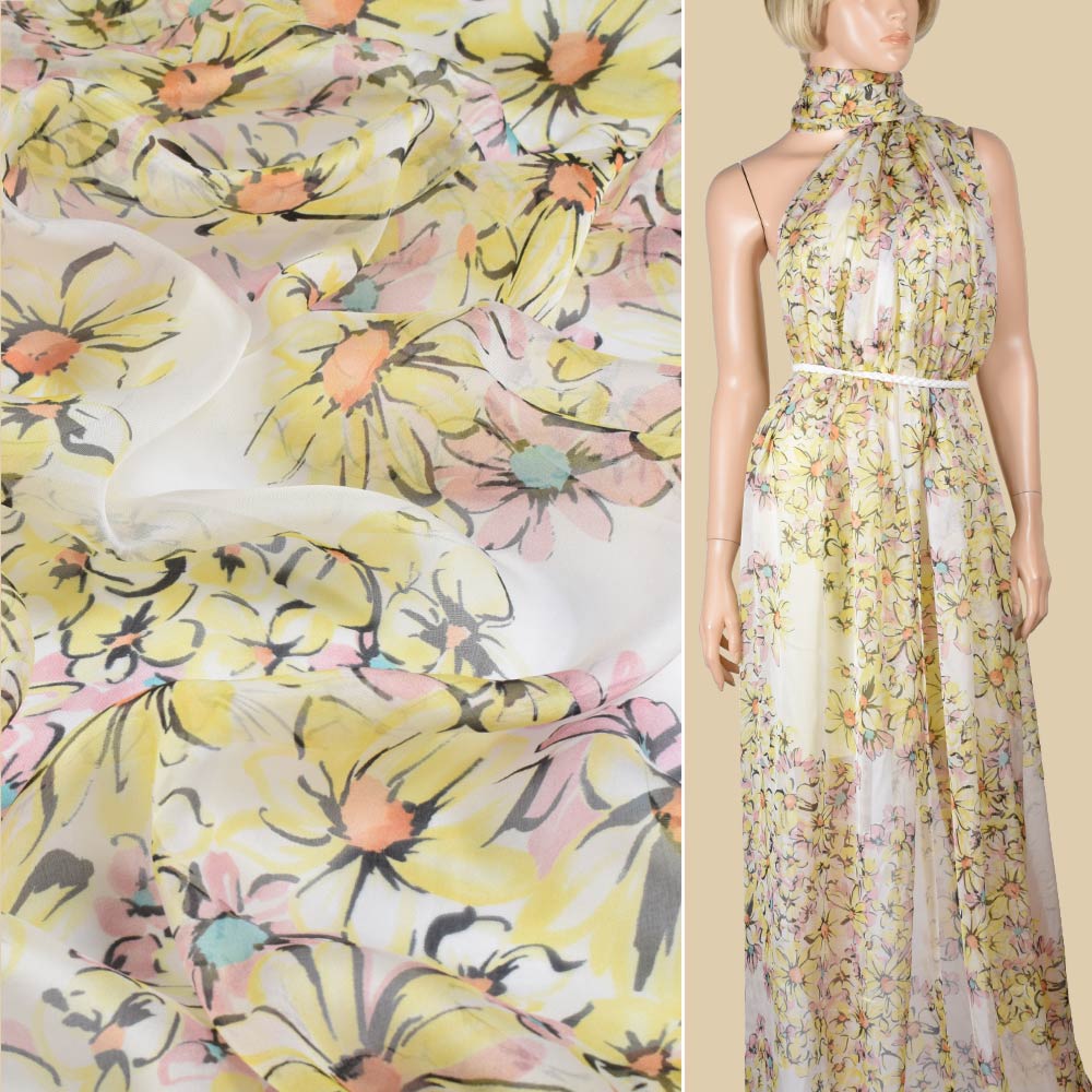 Шелк молочный с желто-черными цветами ш.137 купить в розницу и оптом