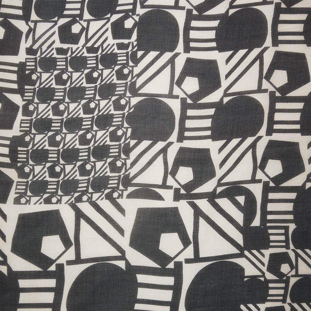 Шелк молочный в черные геометрические фигуры ш.140 купить в розницу и оптом