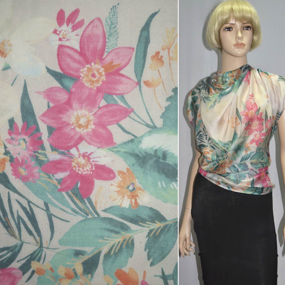 Шелк серый светлый с малиново-желтыми цветами ш.140. Состав ткани: Шелк-100. Плотность ткани: 22 г/м.кв. Страна производитель: Германия. Натуральный шелк – гладкая, приятная на ощупь, пластичная ткань с мягким блеском. Материал не вызывает аллергии, обладает высокой гигроскопичностью, будет комфортен в носке в любое время года. Натуральный шелк не электризуется, не прилипает к коже, не накапливает статическое напряжение. Шелковые вещи износостойкие и длительное время будут сохранять свой первоначальный вид благодаря прочности плетения нити. Шелк отлично сочетается практически со всеми видами ткани.