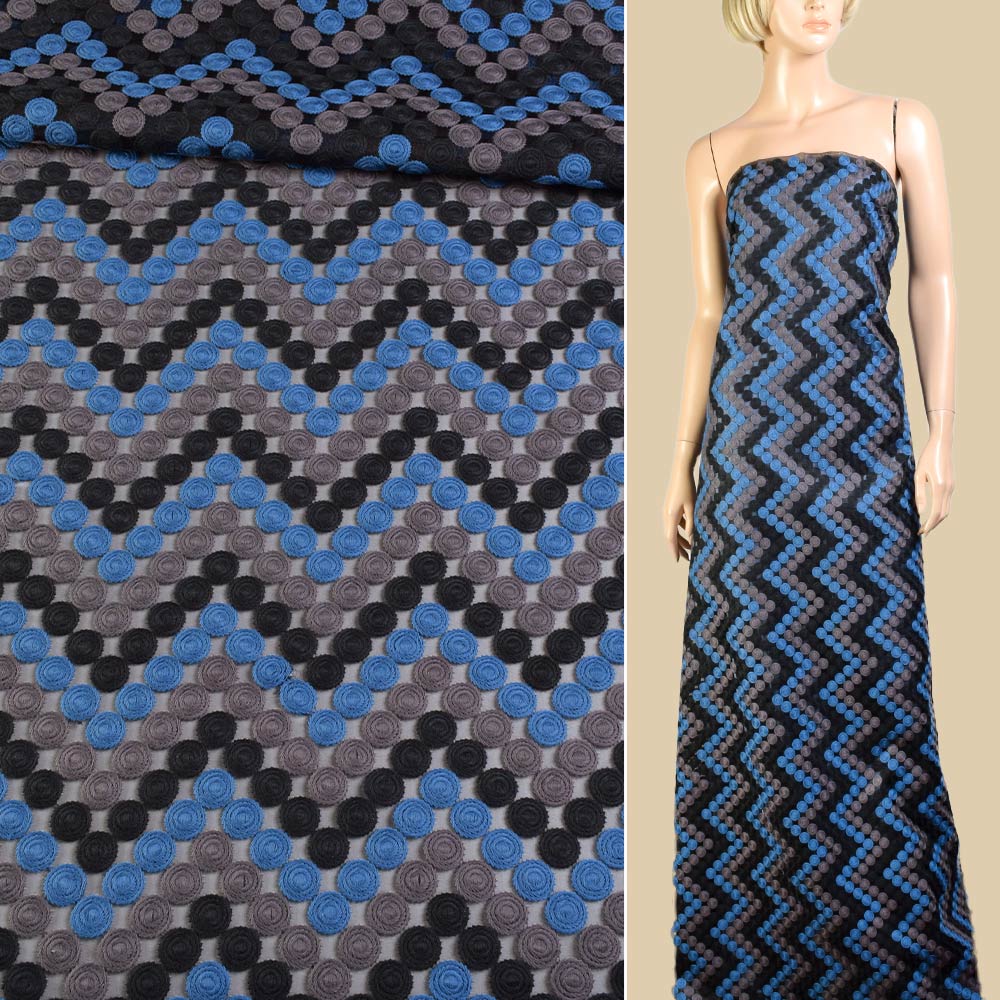 Шелк полиамид черный с вышивкой монеты синие, серые, черные и, ш.150 купить в розницу и оптом