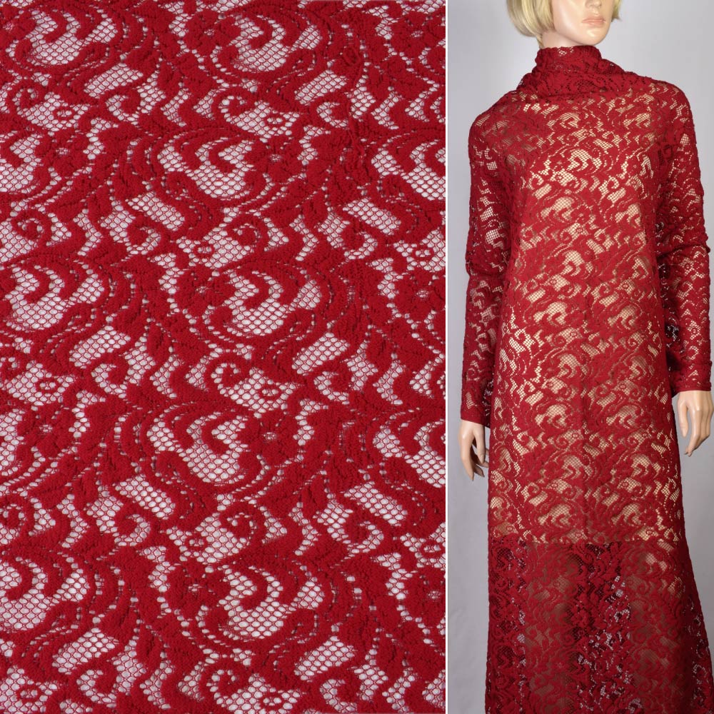 Трикотаж ажурный вишневый с веточками ш.160 купить в розницу и оптом