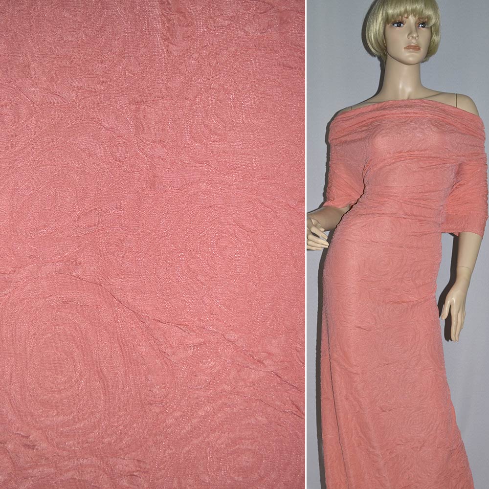 Трикотаж Фукра коралловый с розами ш.140. Состав ткани: Вискоза-20, Полиамид-40, Полиэстер-40. Плотность ткани: 228 г/м.кв. Страна производитель: Южная Корея. Трикотаж - это мягкая плотная материя, не прозрачная. Приятная на ощупь, комфортная в носке. Благодаря содержанию синтетических материй, материал более износостойкий и надолго сохраняет свой первоначальный вид. Ткань отличается своей приятной текстурой, хорошей растяжимостью, практически не мнется, хорошо драпируется. Трикотаж достаточно простой в уходе. Используется для пошива платьев, спортивных костюмов, легких жакетов, поло, футболок и многого другого.
