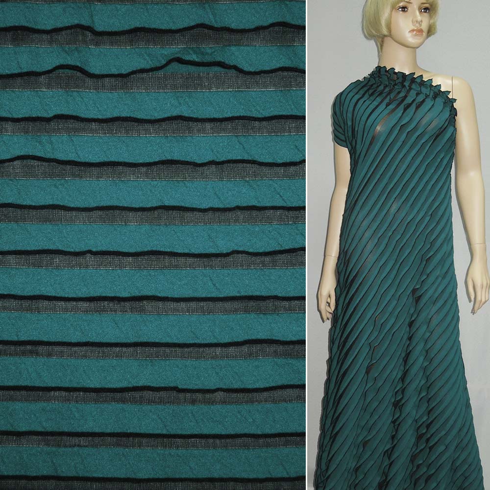 Трикотаж бирюзовый темный с черными полоски и рюшами ш.160 купить в розницу и оптом