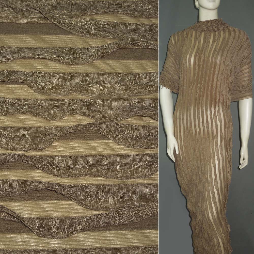 Трикотаж шоколадный с рюшами ш.158. Состав ткани: Полиакрил-30, Полиамид-30, Полиэстер-30, Эластан-10. Плотность ткани: 180 г/м.кв. Страна производитель: Южная Корея. Трикотаж - это мягкая плотная материя, не прозрачная. Приятная на ощупь, комфортная в носке. Благодаря содержанию синтетических материй, материал более износостойкий и надолго сохраняет свой первоначальный вид. Ткань отличается своей приятной текстурой, хорошей растяжимостью, практически не мнется, хорошо драпируется. Трикотаж достаточно простой в уходе. Используется для пошива платьев, спортивных костюмов, легких жакетов, поло, футболок и многого другого.