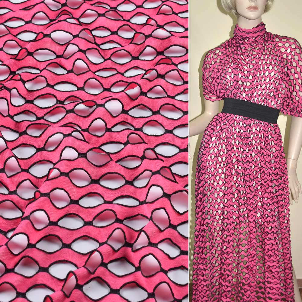 Трикотаж розовый волны с овальными дырочками ш.160 купить в розницу и оптом