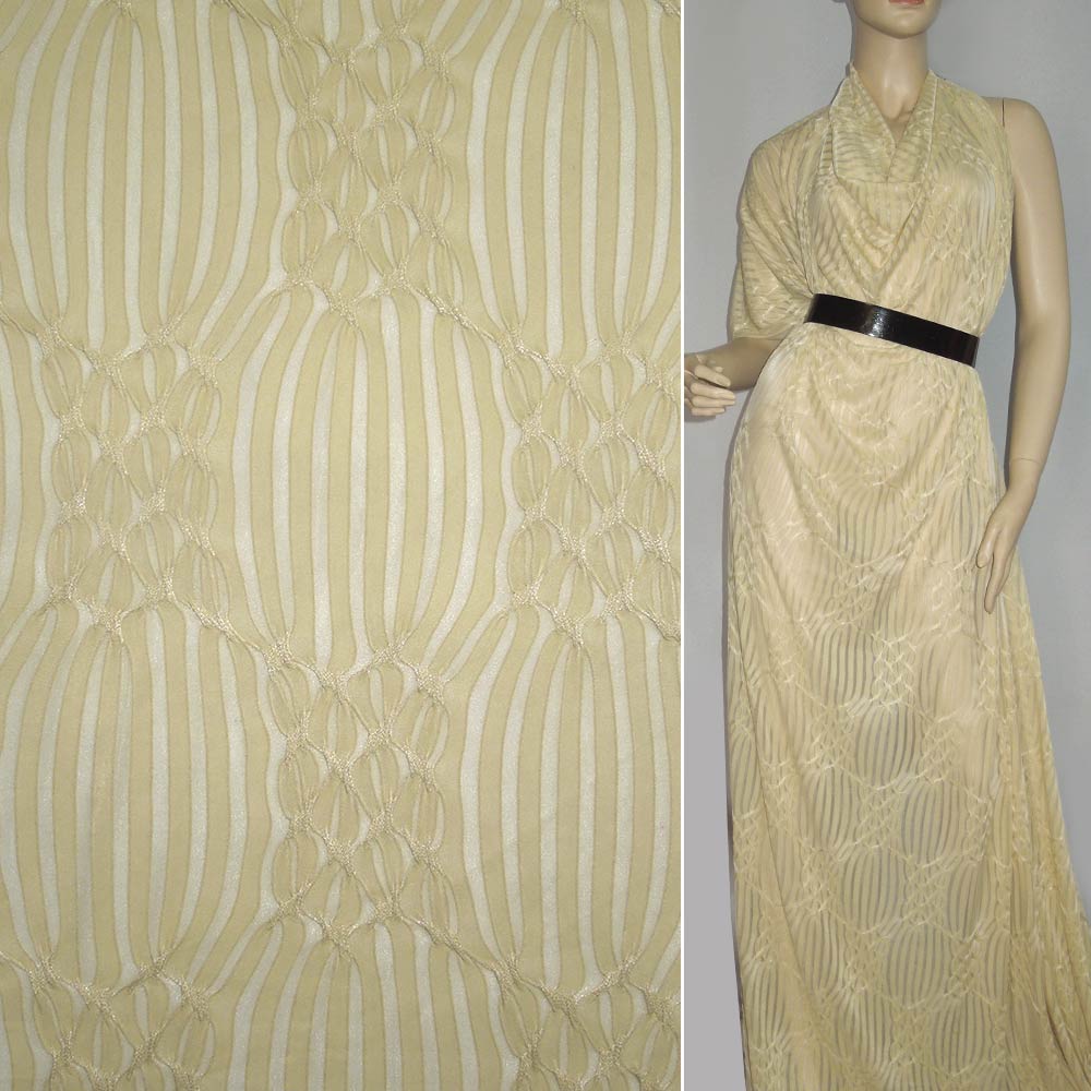 Трикотаж бежевый светлый с ажурными полосками ш.160 купить в розницу и оптом