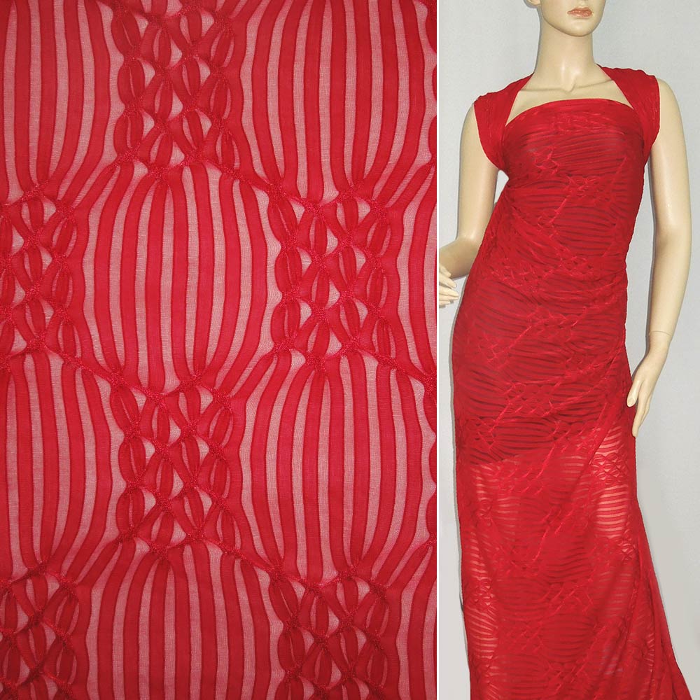 Трикотаж красный с ажурными полосками ш.160 купить в розницу и оптом