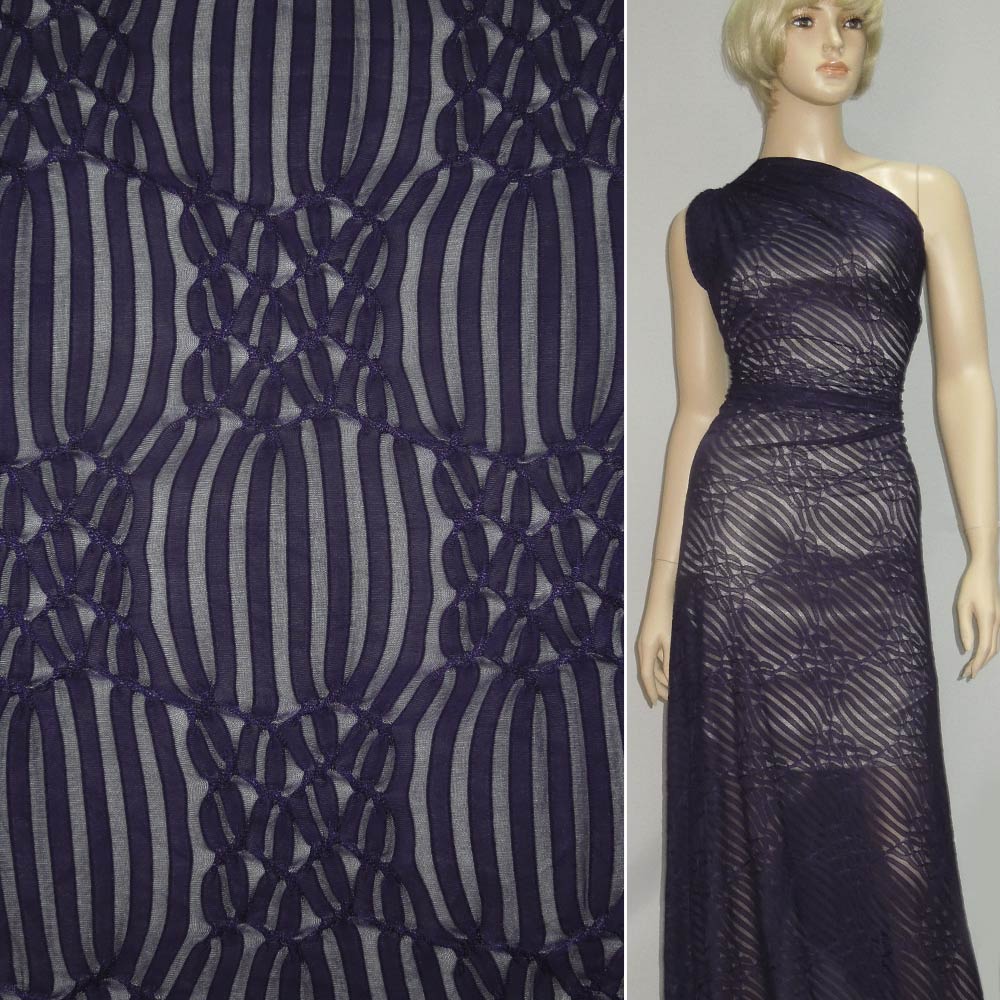 Трикотаж синий с ажурными полосками ш.160 купить в розницу и оптом