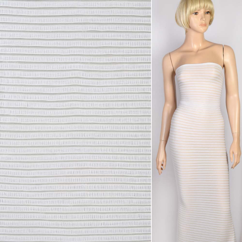 Трикотаж с хлопком стрейч белый в жатую полоску, ш.128 купить в розницу и оптом