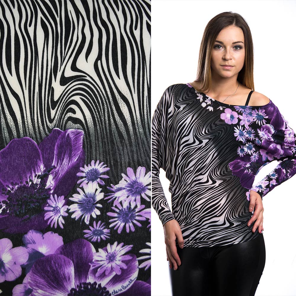 Трикотаж структурные штрихи зебра, 2-ст. купон цветы фиолетовые ш.160 купить в розницу и оптом