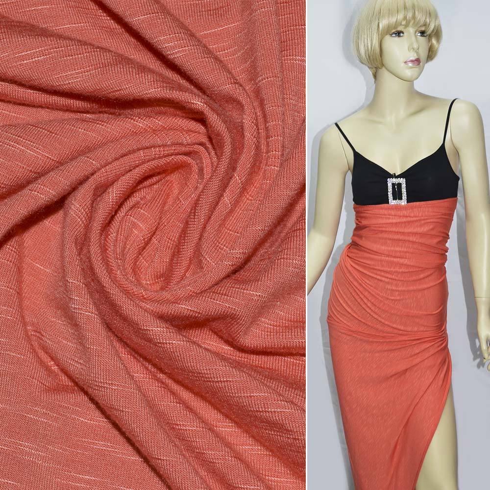 Трикотаж вискозний стрейч оранжево-коралловый ш.140 купить в розницу и оптом