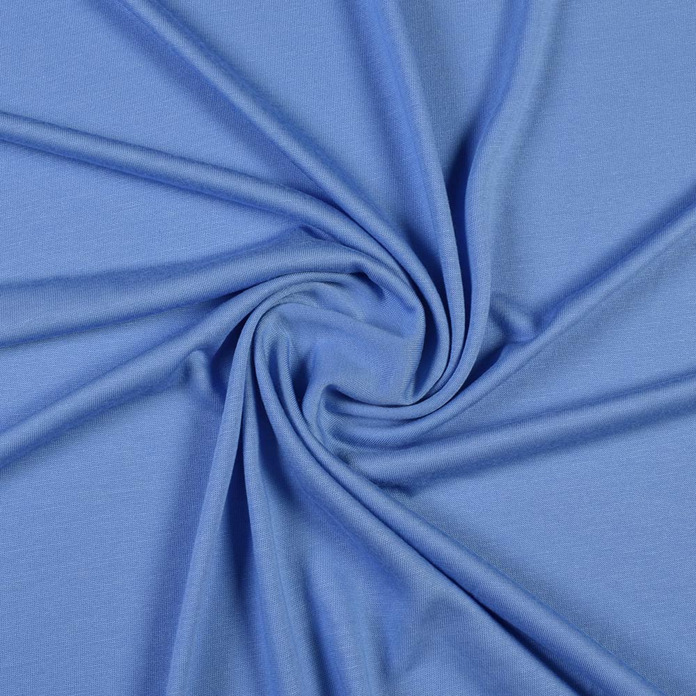 Трикотаж вискозный стрейч голубой васильковый, ш.150. Состав ткани: Вискоза-95, Эластан-5. Плотность ткани: 125 г/м.кв. Страна производитель: Германия. Трикотаж - это мягкая плотная материя, не прозрачная. Приятная на ощупь, комфортная в носке. Благодаря содержанию синтетических материй, материал более износостойкий и надолго сохраняет свой первоначальный вид. Ткань отличается своей приятной текстурой, хорошей растяжимостью, практически не мнется. Трикотаж достаточно простой в уходе. Используется для пошива платьев, спортивных костюмов, легких жакетов, поло, футболок и многого другого.