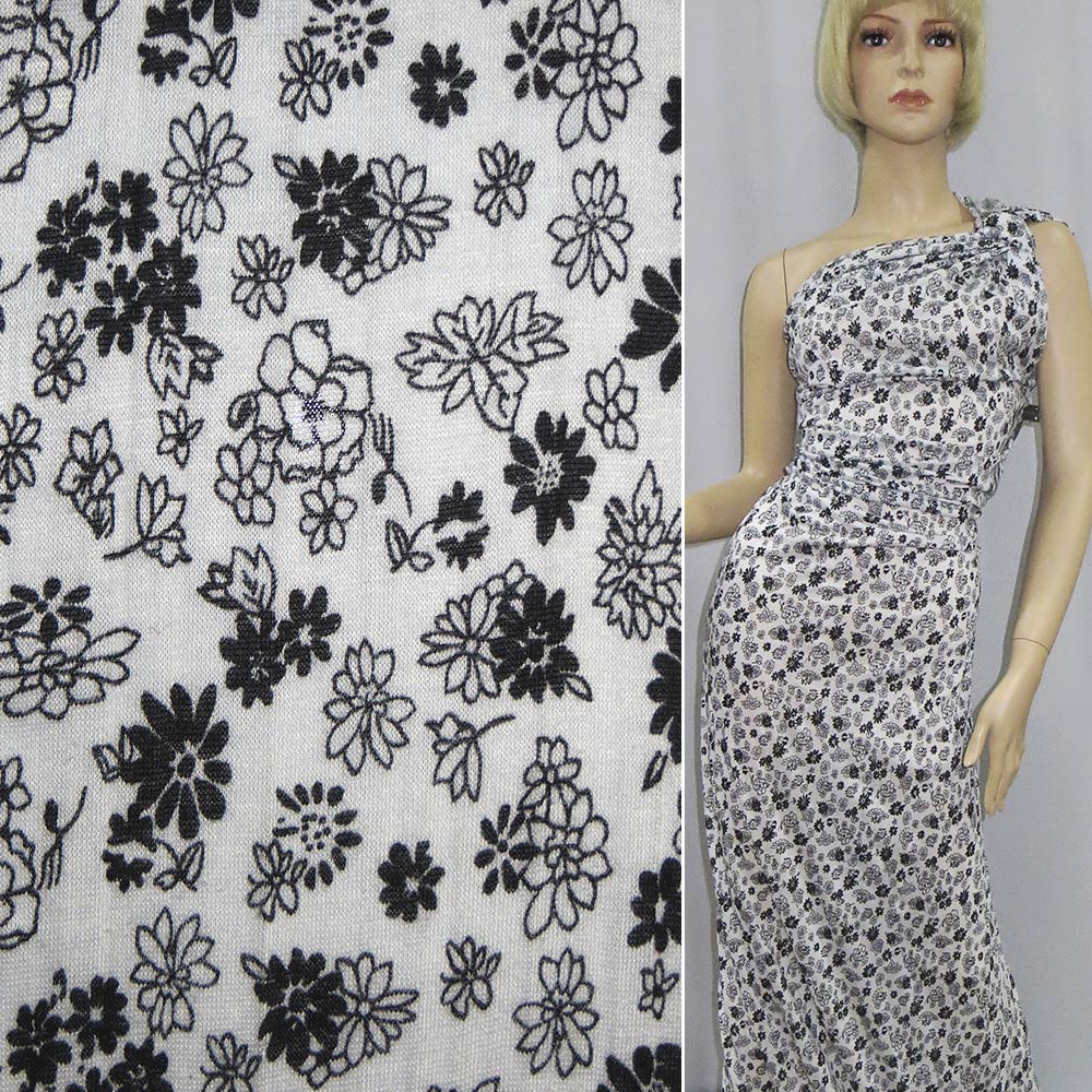 Трикотаж с вискозой белый с черно-белыми цветами ш.150 купить в розницу и оптом