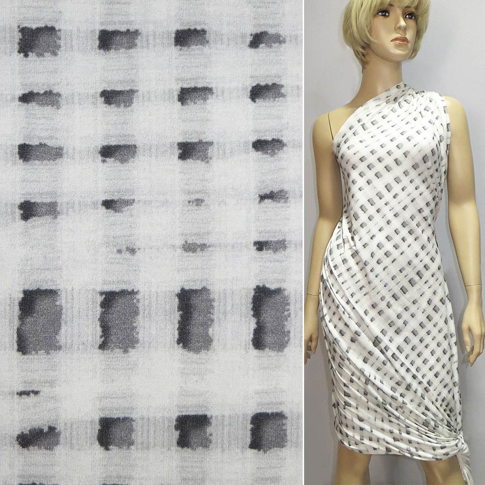 Трикотаж с вискозой стрейч белый в серые квадраты ш.142 купить в розницу и оптом