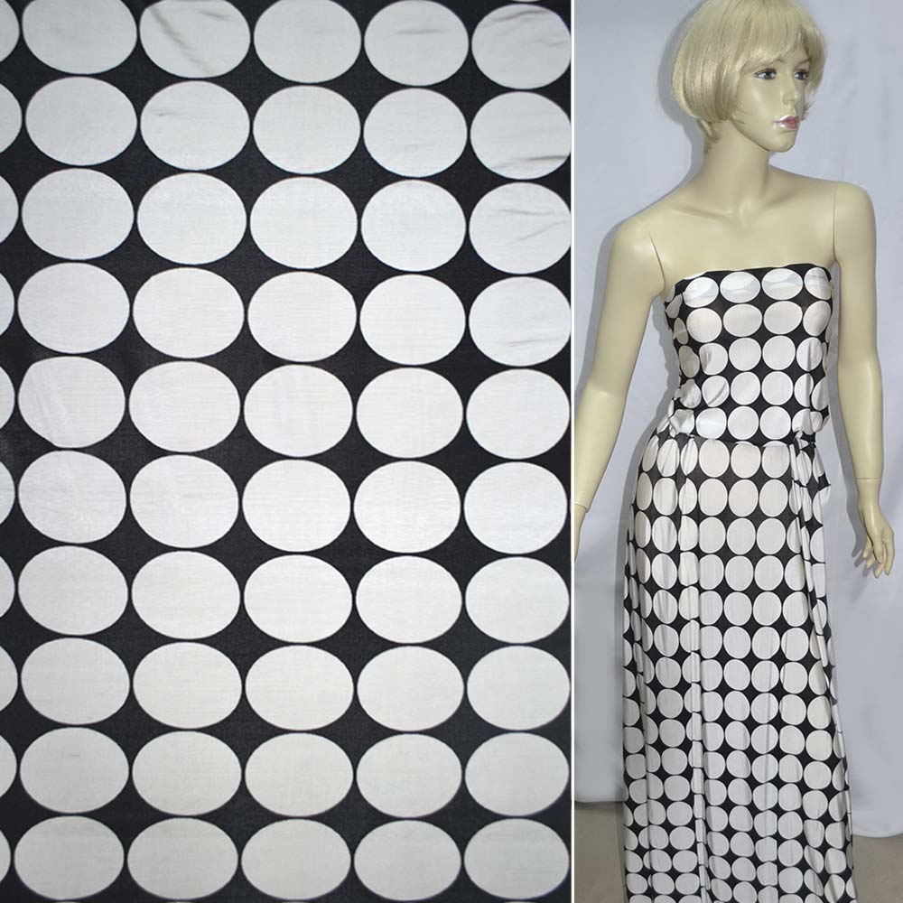 Трикотаж вискозный черный в белые круги ш.140 купить в розницу и оптом