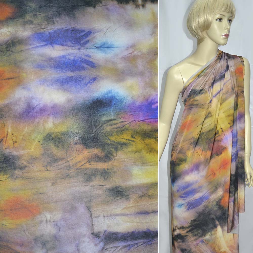 Трикотаж вискозный мокрый стрейч горчично-оранжевые разводы ш.145 купить в розницу и оптом