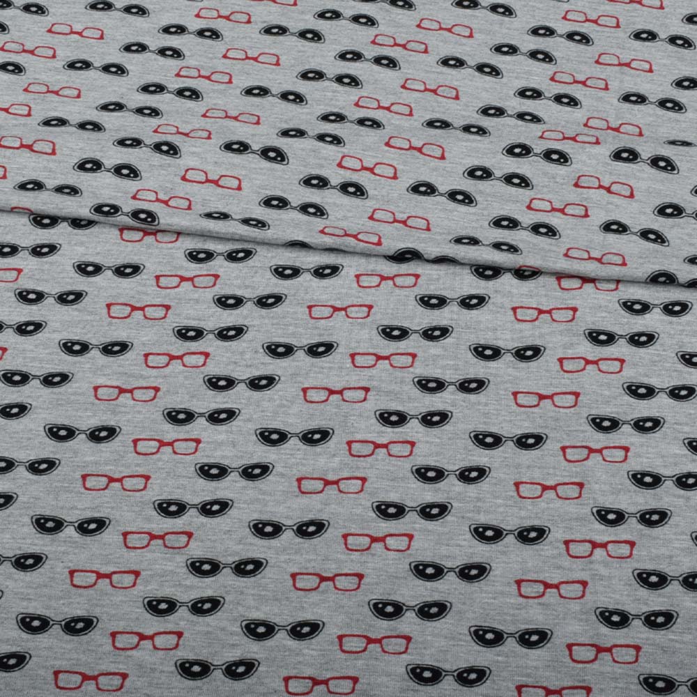 Трикотаж вискозный серый, красные, черные очки, ш.150 купить в розницу и оптом