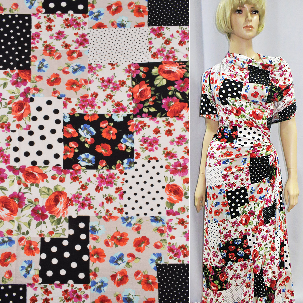 Трикотаж вискозный стрейч белый квадраты пэчворк, цветы, горох ш.150 купить в розницу и оптом
