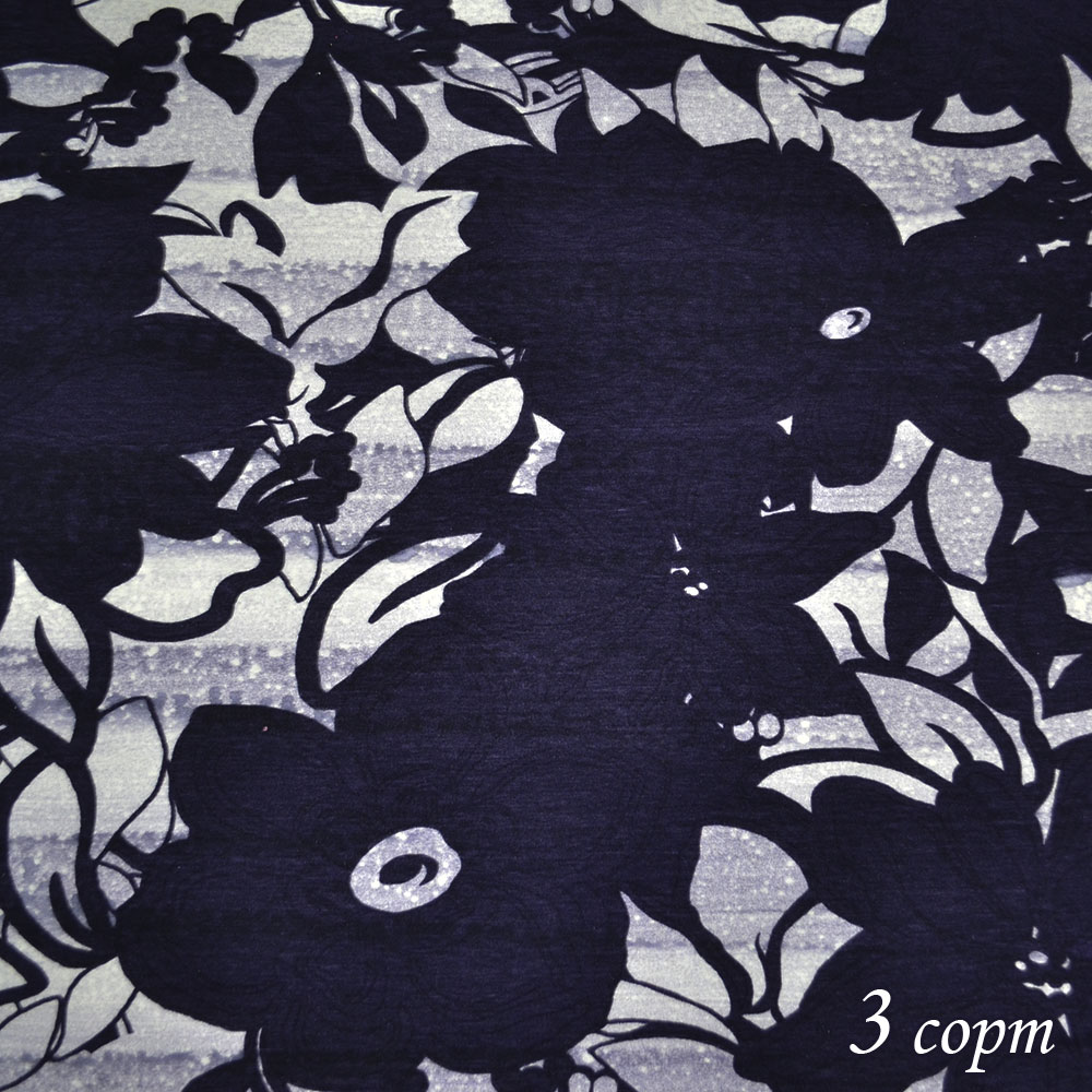Трикотаж вискозный стрейч белый с фиолетовыми цветами ш.145 купить в розницу и оптом