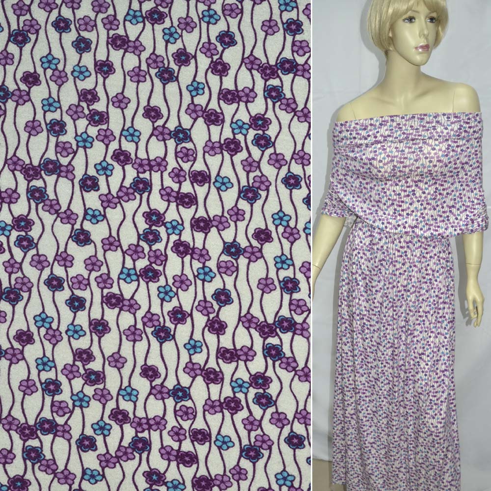 Трикотаж вискозный стрейч белый с сиреневыми вьющимися мелкими цветами ш.154 купить в розницу и оптом