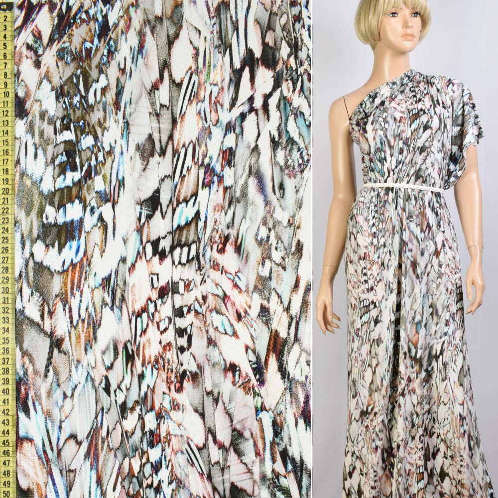Трикотаж вискозный стрейч белый в разноцветный абстрактный рисунок, ш.150. Состав ткани: Вискоза-96, Эластан-4. Плотность ткани: 201 г/м.кв. Страна производитель: Германия. Трикотаж - это мягкая плотная материя, не прозрачная. Приятная на ощупь, комфортная в носке. Благодаря содержанию синтетических материй, материал более износостойкий и надолго сохраняет свой первоначальный вид. Ткань отличается своей приятной текстурой, хорошей растяжимостью, практически не мнется. Трикотаж достаточно простой в уходе. Используется для пошива платьев, спортивных костюмов, легких жакетов, поло, футболок и многого другого.