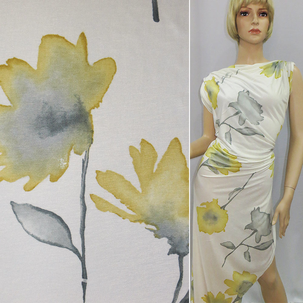 Трикотаж вискозный стрейч бежевый с принтом ш.142 купить в розницу и оптом