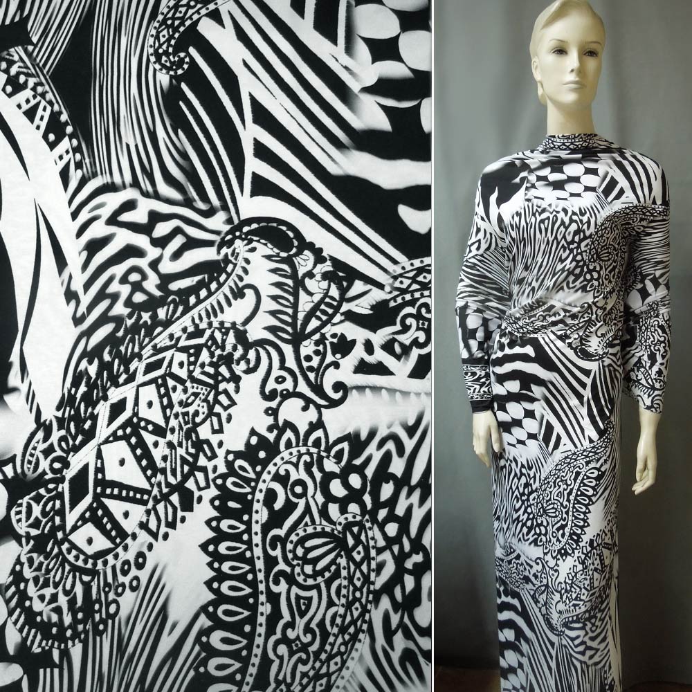Трикотаж вискозный стрейч черный с белыми огурцами и абстракцией ш.148 купить в розницу и оптом