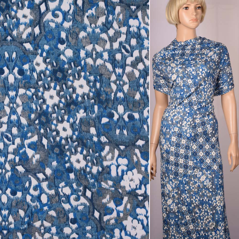 Трикотаж вискозный стрейч "Vertraven" бело-серо-сине-голубая абстракция ш.145 купить в розницу и оптом