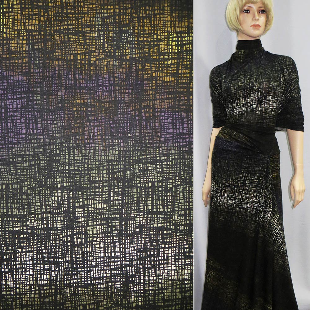 Трикотаж вискозный стрейч коричневые, фиолетовые, бежевые с черными полоски ш.149 купить в розницу и оптом