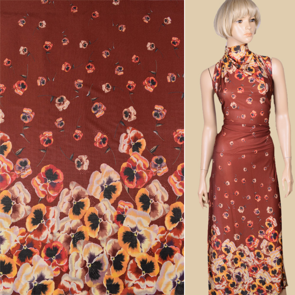 Трикотаж вискозный стрейч коричневый, двухсторонний купон анютины глазки(мокр) ш.145 купить в розницу и оптом
